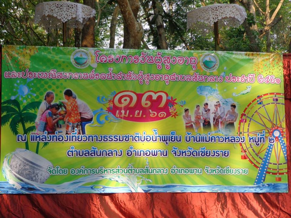 ภาพงานวันที่ 13 เมษายน 2561 ประเพณีสงกรานต์ พิธีถวายน้ำสงกรานต์คณะสงฆ์ พิธีรดน้ำดำหัวผู้นำท้องที่-ท้องถิ่น อดีตกำนัน-ผู้ใหญ่บ้าน และผู้สูงอายุตำบลสันกลาง พร้อมนี้ยังเป็นการส่งเสริมการท่องเที่ยวบ่อน้ำพุเย็นบ้านแม่คาวหลวง ซึ่งทางตำบลสันกลางได้จัดงานประเพณีขึ้นเป็นประจำทุกปี