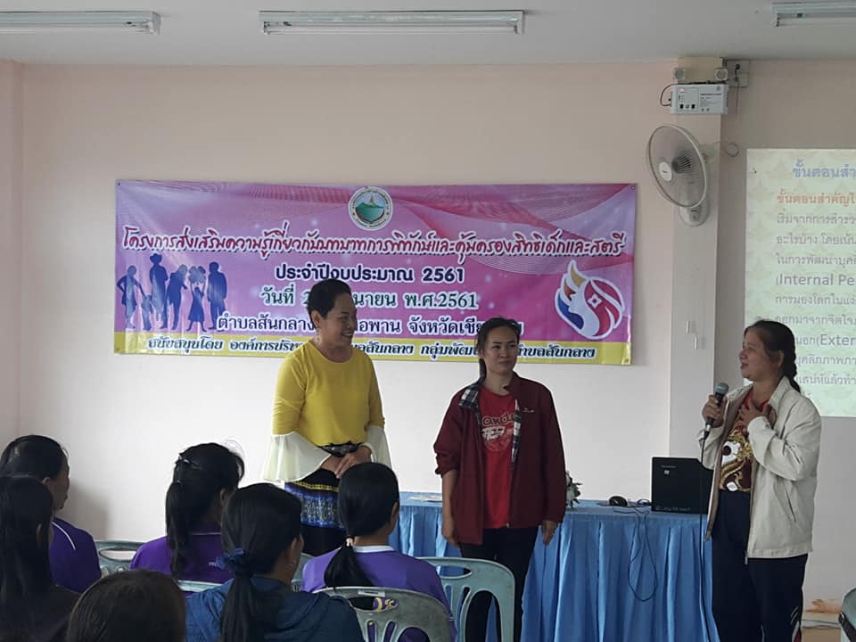 วันที่ 28 มิถุนายน 2561 อบต.สันกลางได้จัดโครงการส่งเสริมความรู้เกี่ยวกับบทบาทการพิทักษ์และคุ้มครองสิทธิเด็กและสตรี ณ ที่ทำการ อบต.สันกลาง โดยมีตัวแทนกลุ่มพัฒนาสตรีเข้าร่วมโครงการอบรม