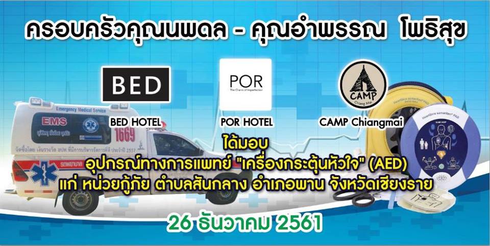 ทางตำบลสันกลางขอขอบคุณครอบครัวโพธิสุขและกลุ่มโรงแรมฯ เป็นอย่างสูง ที่ได้บริจาคอุปกรณ์การแพทย์ฯ ซึ่งอุปกรณ์เครื่องนี้จะสร้างความอุ่นใจให้กับพี่น้องประชาชนในการช่วยปฐมพยาบาลเบื้องต้น และถือเป็นการยกระดับอุปกรณ์ทางการแพทย์ให้กับทีมกู้ชีพของตำบลสันกลาง ในการปฐมพยาบาลก่อนนำตัวผู้ป่วยส่งโรงพยาบาลโดยปลอดภัย