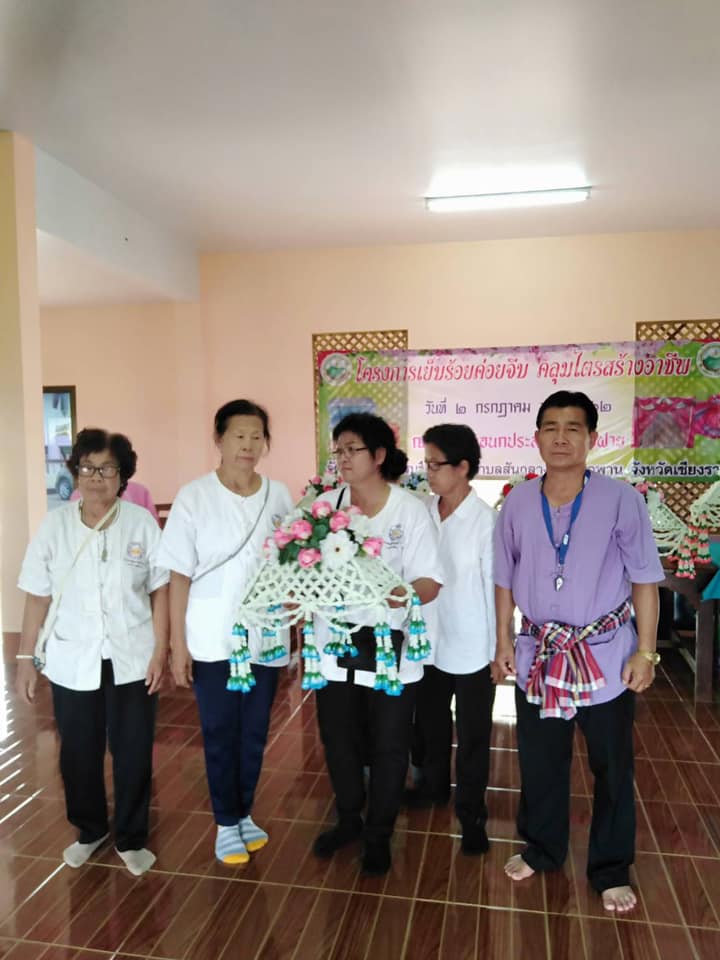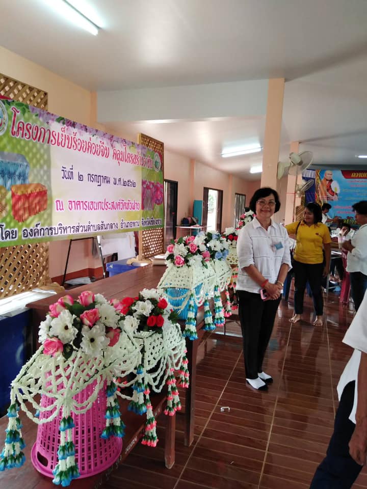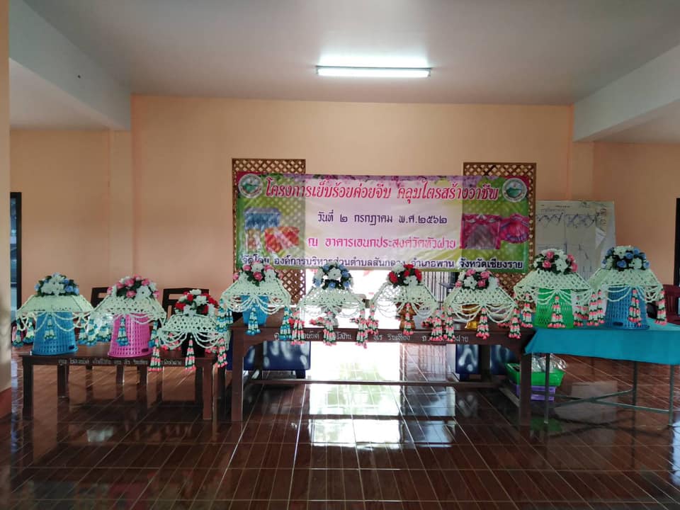 วันที่ 2 กรกฎาคม 2562 งานพัฒนาชุมชน อบต.สันกลาง อบรมส่งเสริมอาชีพผู้สูงอายุ ทำคลุมผ้าไตร ณ วัดหัวฝาย