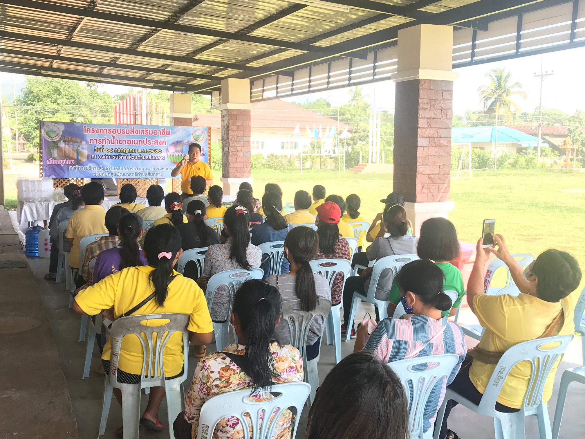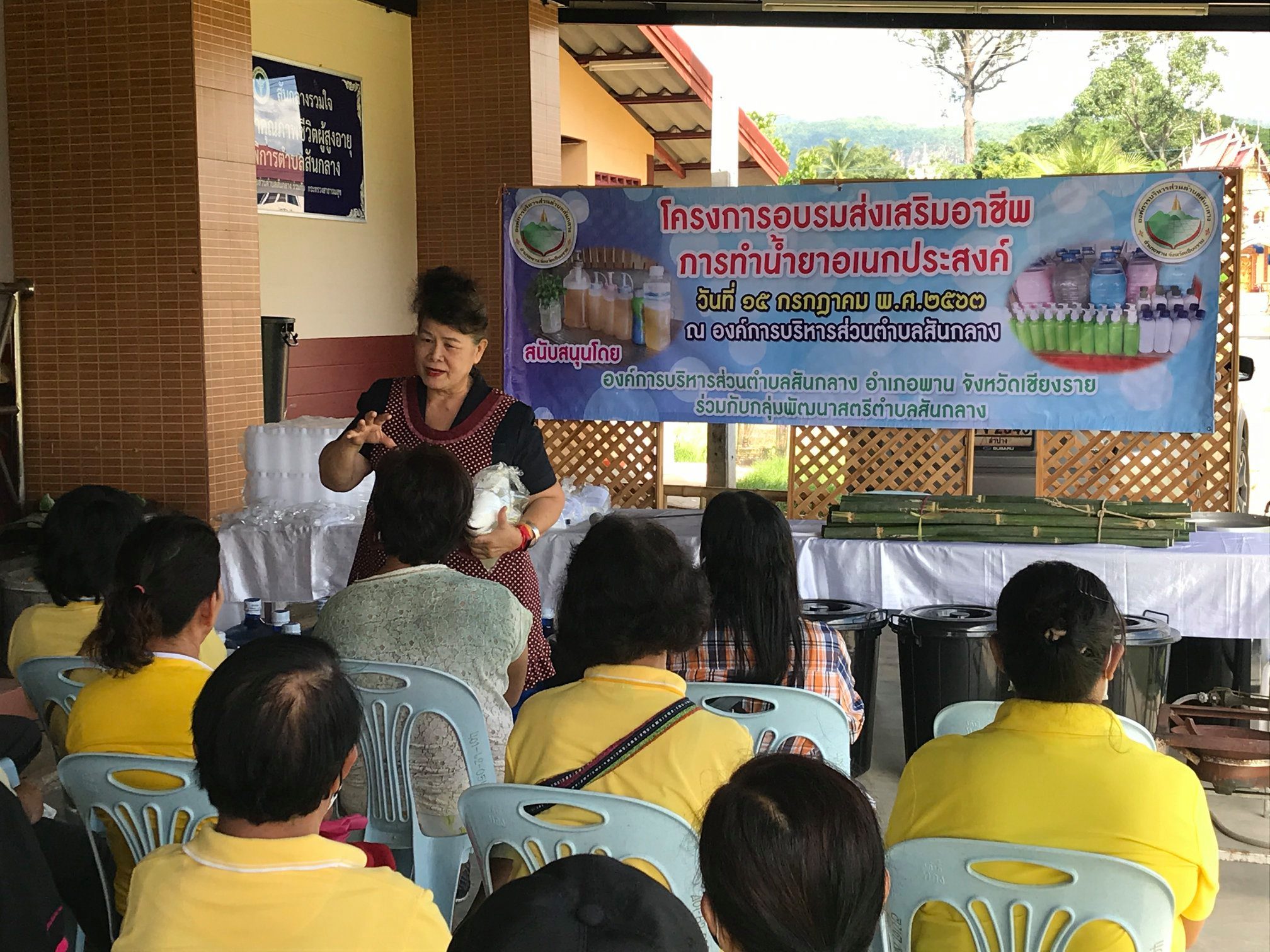 วันที่ 15 กรกฎาคม 2563 งานพัฒนาชุมชน อบต.สันกลาง ร่วมกับกลุ่มพัฒนาสตรีตำบลสันกลาง ได้จัดอบรมส่งเสริมอาชีพการทำน้ำยาอเนกประสงค์ โดยมีตัวแทนกลุ่มพัฒนาสตรีที่สนใจเข้าร่วมอบรม