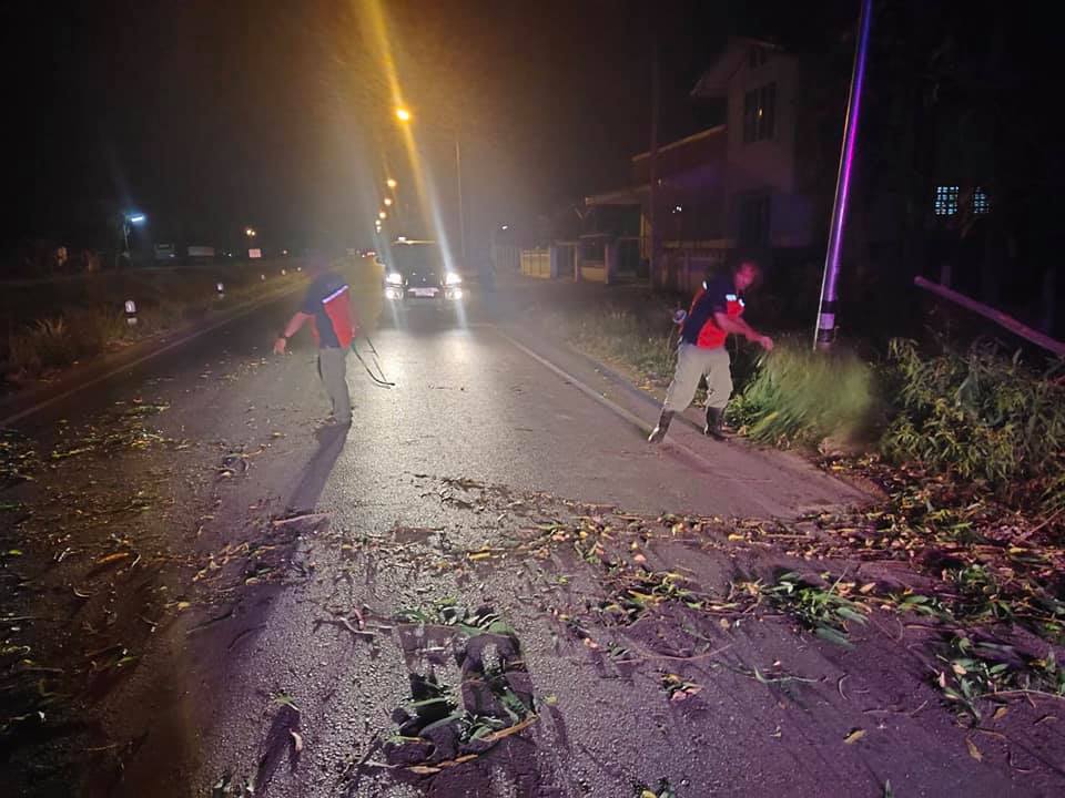 รับแจ้งเมื่อเวลา 21.00 น. โดยประมาณ ได้เกิดเหตุต้นไม้ใหญ่ โค่นล้มกีดขวางเส้นทางจราจร บนถนนเลียบคลองชลประทาน พื้นที่หมู่ที่ 6 บ้านแม่คาวโตน งานป้องกัน ฯ และกู้ชีพ อบต.สันกลาง ได้ออกปฏิบัติหน้าที่ตามที่ได้รับแจ้ง ผลการปฏิบัติงานเรียบร้อยดี การจราจรสามารถสัญจรได้ตามปกติ