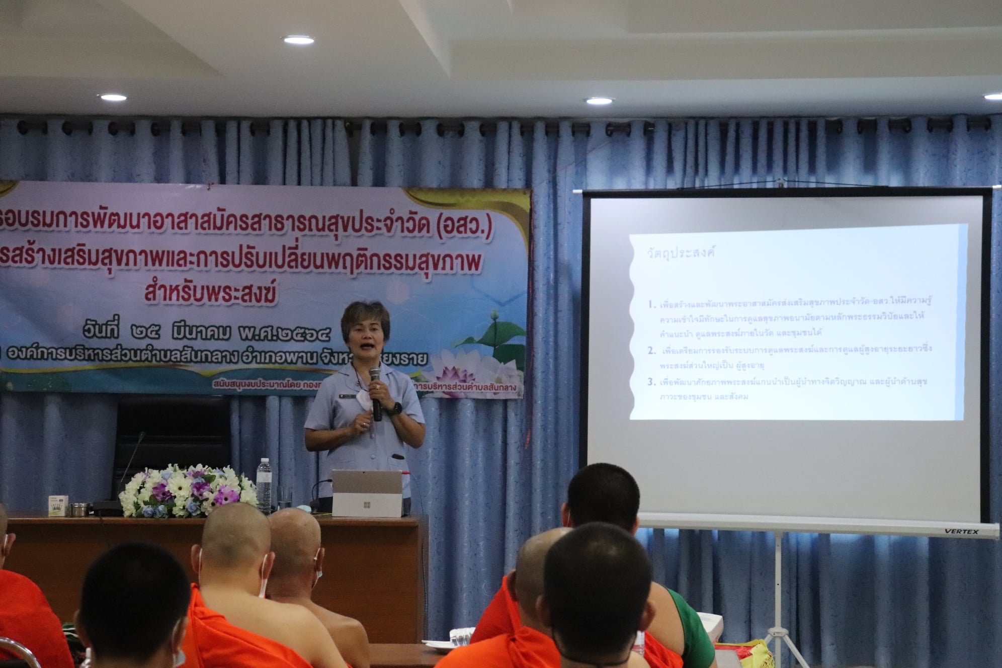 วันที่ 25 มีนาคม 2564 คณะสงฆ์ตำบลสันกลาง ร่วมกับ อาสาสมัครสาธารณสุขประจำวัด (อสว.) ได้จัดโครงการอบรมการพัฒนาอาสาสมัครสาธารณสุขประจำวัด ด้านการสร้างเสริมสุขภาพและการปรับเปลี่ยนพฤติกรรมสุขภาพสำหรับพระสงฆ์ งบประมาณโดยกองทุนหลักประกันสุขภาพตำบลสันกลาง โดยมีวิทยากรจากโรงพยาบาลพานมาให้ความรู้ความเข้าใจในการส่งเสริมสุขภาพ และการรักษาสุขภาพ