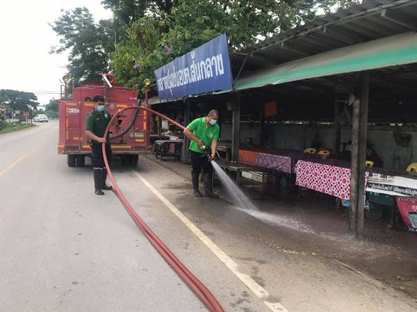 ล้างทำความสะอาดตลาดชุมชุม อบต.สันกลาง