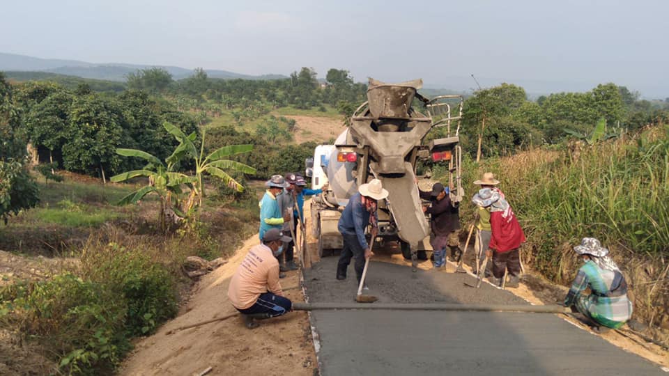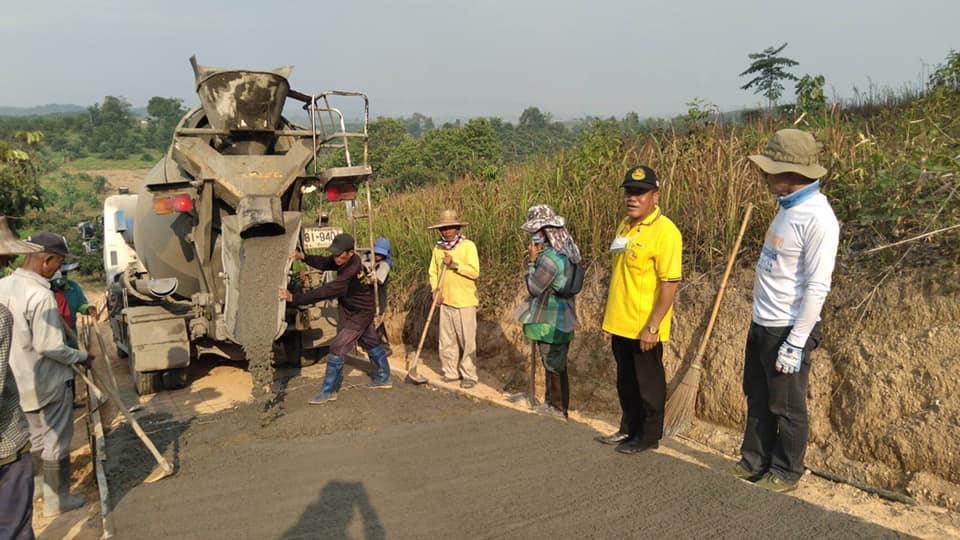 นายก อบต. สมทบงบประมาณท้องถิ่น เทถนนคอนกรีตทางเข้าบ่อขยะ ม.9 ร่วมชาวบ้าน