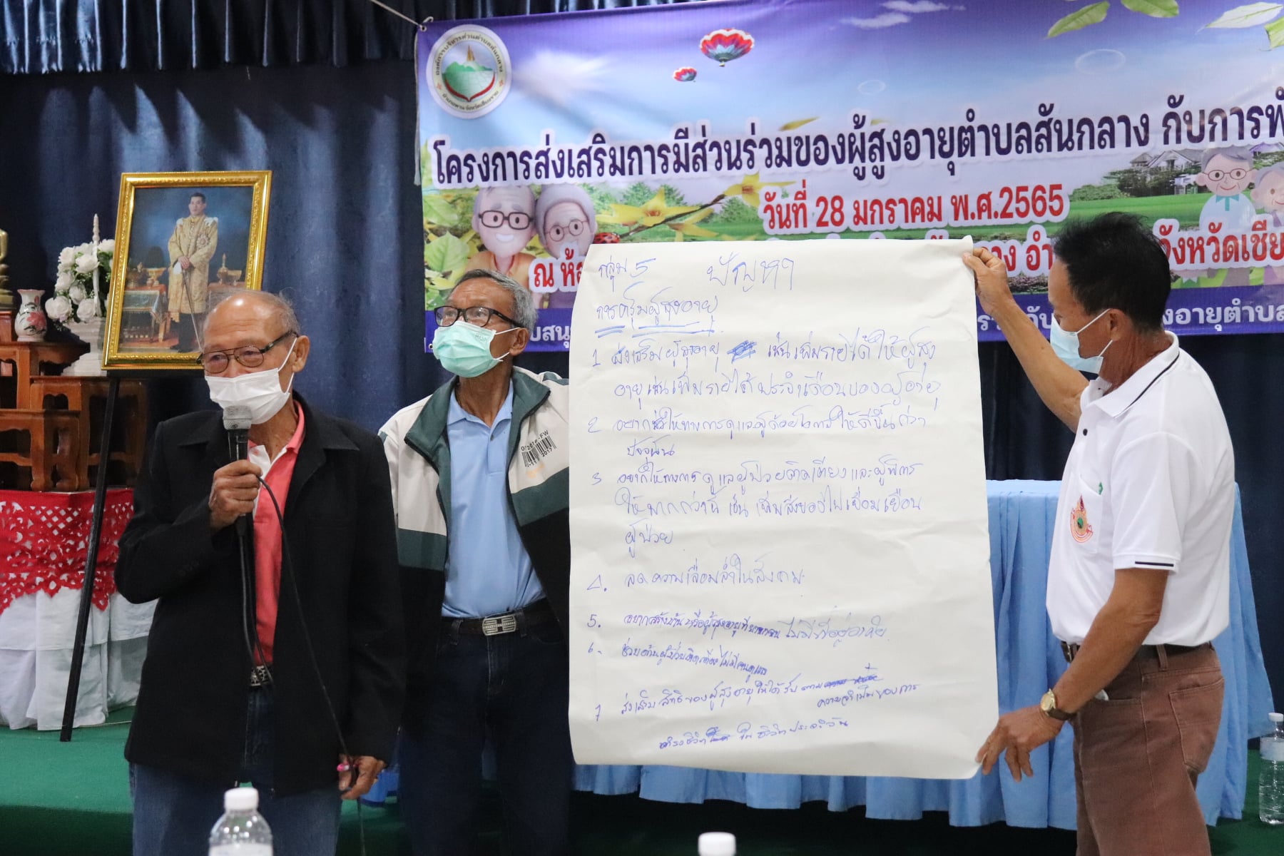 งานพัฒนาชุมชน อบต.สันกลาง จัดโครงการส่งเสริมการมีส่วนร่วมผู้สูงอายุกับการพัฒนาท้องถิ่น ประจำปี 2565 . วันที่ 28 มกราคม พ.ศ.2565 .