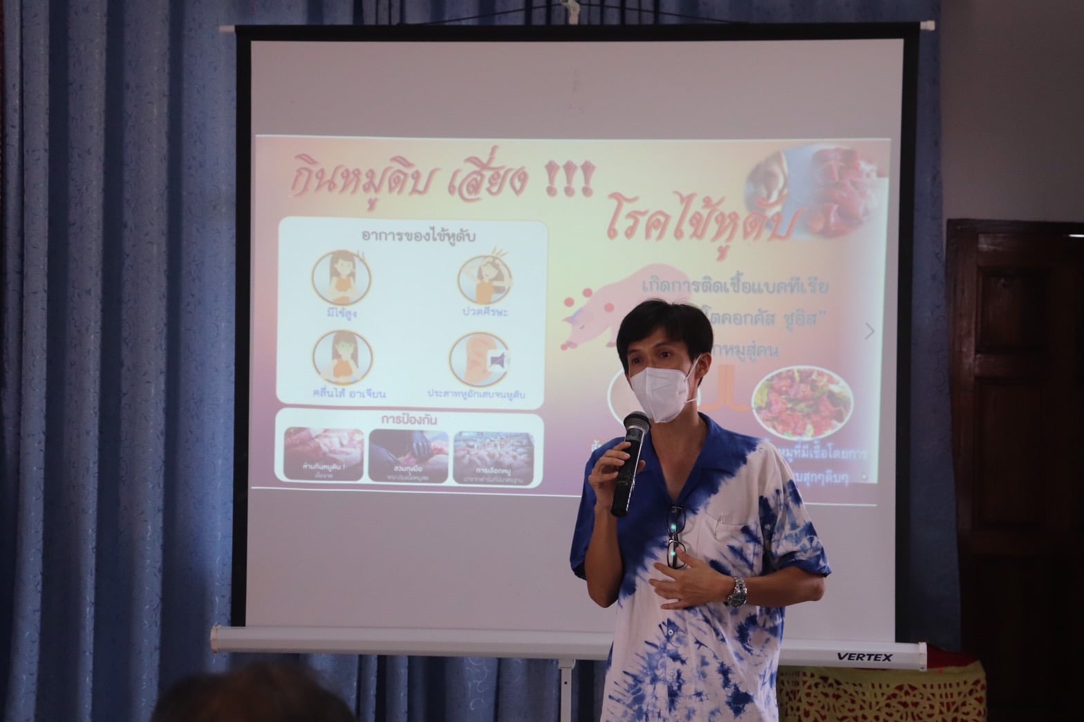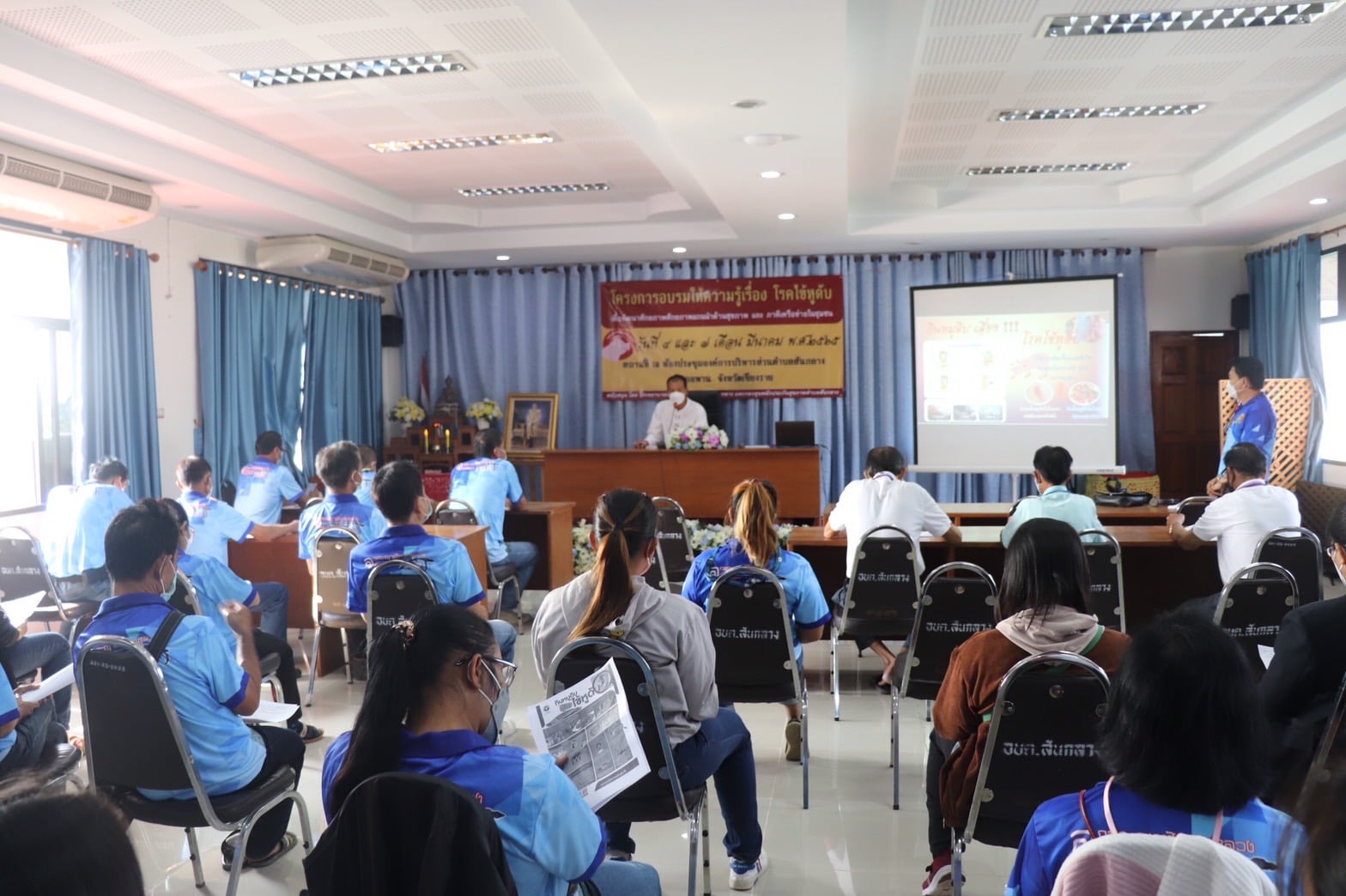 นายก กันต์ เป็นประธานเปิดโครงการพัฒนาศักยภาพแกนนำด้านสุขภาพและภาคีเครือข่าย . วันที่ 4 มีนาคม พ.ศ.2565 เวลา 09.00 น. . นายอลงกรณ์ ดีน้อย นายกองค์การบริหารส่วนตำบลสันกลาง ได้เป็นประธานเปิดโครงการอบรมพัฒนาศักยภาพและภาคีเครือข่าย ในเรื่อง "โรคไข้หูดับ" ซึ่งโครงการดังกล่าวทาง รพ.สต.ตำบลสันกลาง โดยนายพิรุณ เกษม ผอ.รพ.สต. เป็นหน่วยงานผู้จัด งบประมาณโดยกองทุนหลักประกันสุขภาพตำบลสันกลาง มีกลุ่มเป้าหมายประกอบด้วย ผู้นำชุมชนกำนัน-ผู้ใหญ่บ้าน สมาชิกสภา อบต. และแกนนำสุขภาพ อสม.ในหมู่บ้าน . โรคไข้หูดับ สาเหตุหลักของการติดเชื้อ คือการสัมผัสกับเชื้อแบคทีเรีย สเตรฟโตคอกคัส ซูอิส (Streptococcus Suis) ที่อยู่ในหมู ที่พบบ่อยคือ กลุ่มกินหมูดิบ ไม่ได้ผ่านปรุงสุกให้ดี . ความรุนแรงของโรคจะมีหลายระดับ แต่ที่อันตรายที่สุด คือเยื่อหุ้มสมองอักเสบ ติดเชื้อในกระแสโลหิต ความดันตก ติดเชื้อที่ผิวหนังอักเสบรุนแรงมีเลือดออกที่ผิวหนัง ลิ้นหัวใจ ปอดอักเสบ เยื่อบุช่องท้องอักเสบอาการเหล่านี้รุนแรงต้องรีบได้รับการรักษา หรือในคนที่เยื่อหุ้มสมองอักเสบ อาจเกิดสภาพหูดับได้หลังจากการรักษา หรือถ้าเซลล์สมองส่วนไหนโดนทำลายก็อาจส่งผลต่ออวัยวะนั้นๆ เช่น เสียการทรงตัว วิงเวียนศีรษะ . ดังนั้น หมูที่นำประกอบอาหารต้องผ่านอุณหภูมิความร้อน อย่างน้อย 70 องศาเซลเซียส ในการประกอบอาหารต้องมั่นใจว่าสุกไม่มีเลือดที่ชิ้นเนื้อ รวมถึงอุปกรณ์ มีด เขียงหั่นหมู ต้องมีการทำความสะอาดทุกครั้ง จึงจะปลอดภัยจากโรคฯ .