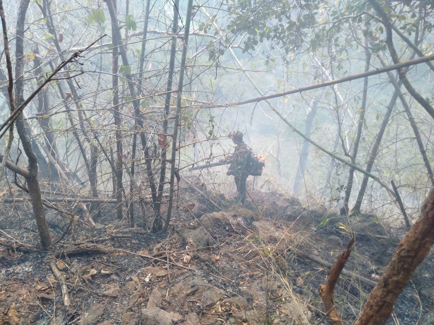 ฝ่ายปกครองท้องที่-ท้องถิ่น กำนันผู้ใหญ่บ้านตำบลสันกลาง อาสาสมัครดับไฟป่า เจ้าหน้าที่ป่าไม้ และเจ้าหน้าที่งานป้องกันและบรรเทาสาธารณภัย ได้ร่วมปฏิบัติภารกิจดับไฟป่าในพื้นที่เขตอุทยาน