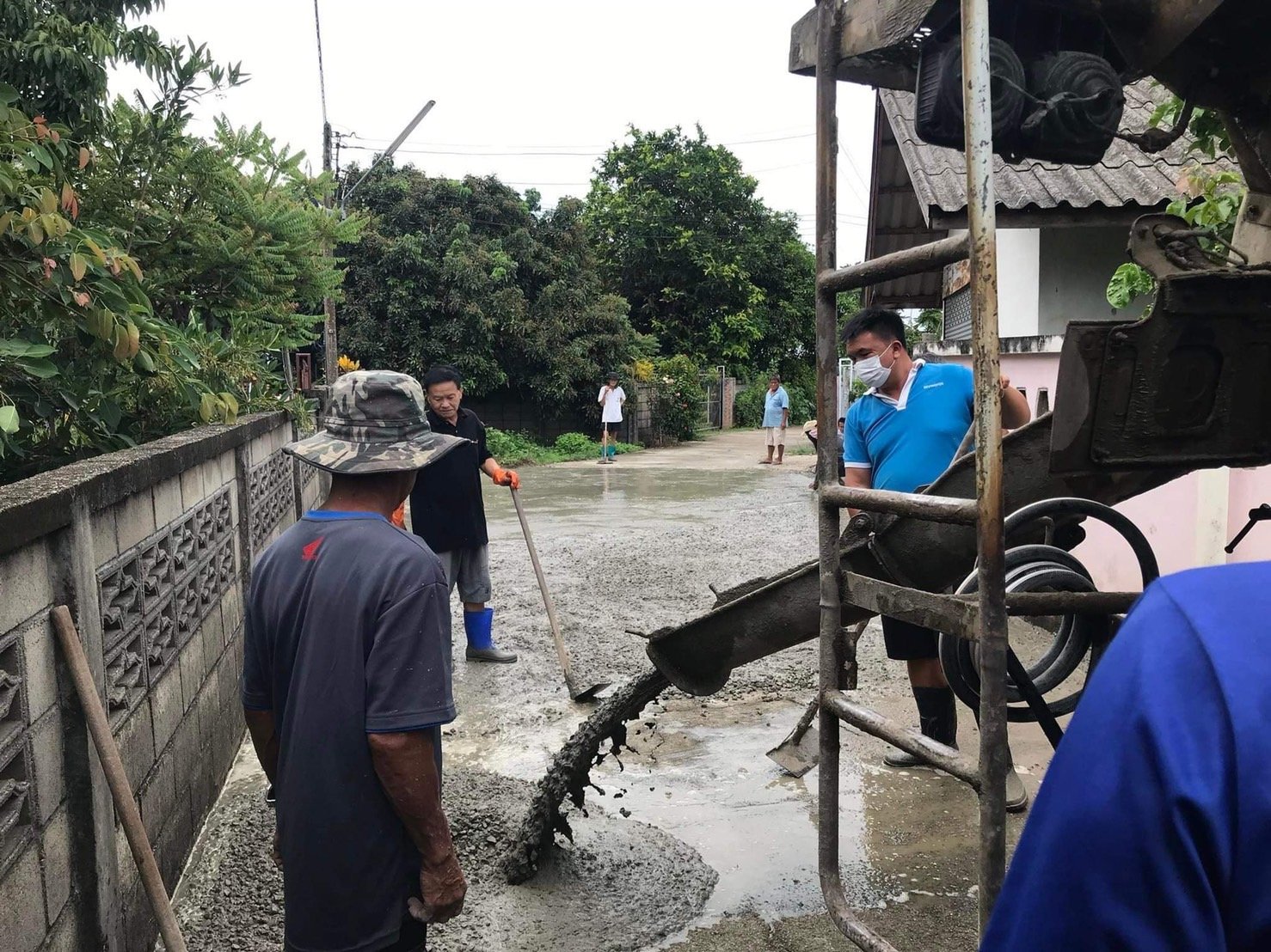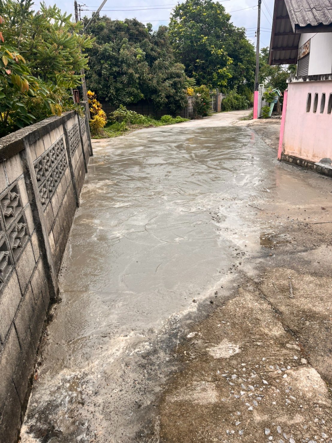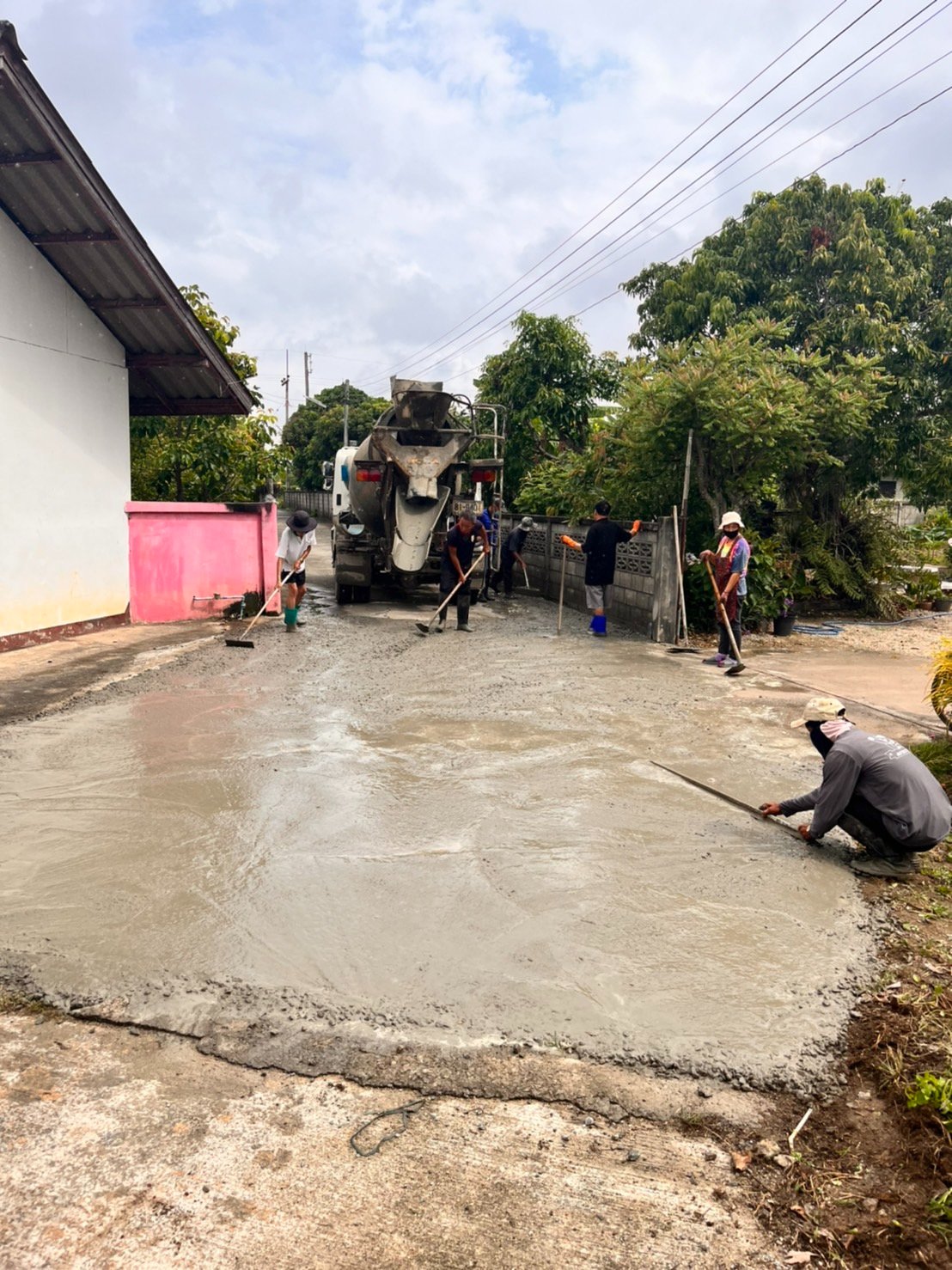เทคอนกรีตซ่อมแซมถนนในหมู่บ้าน
