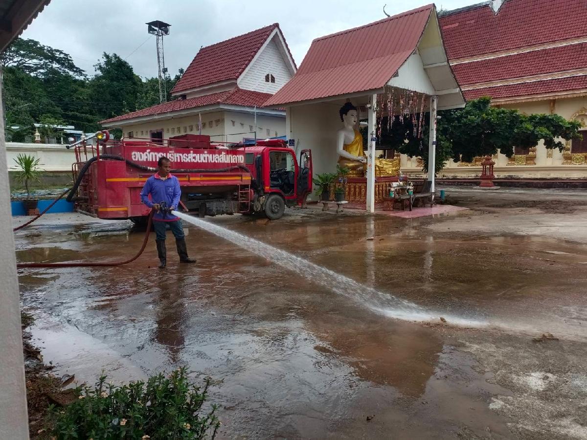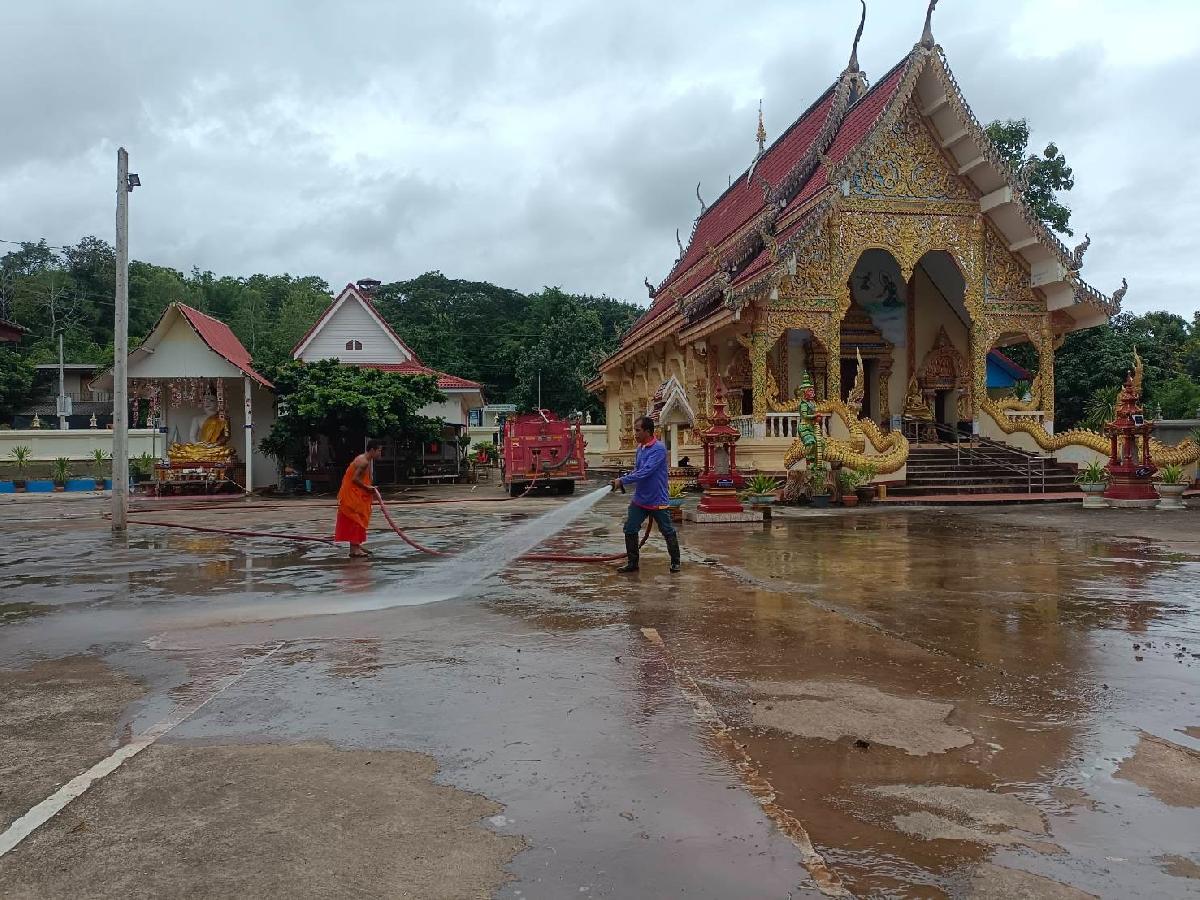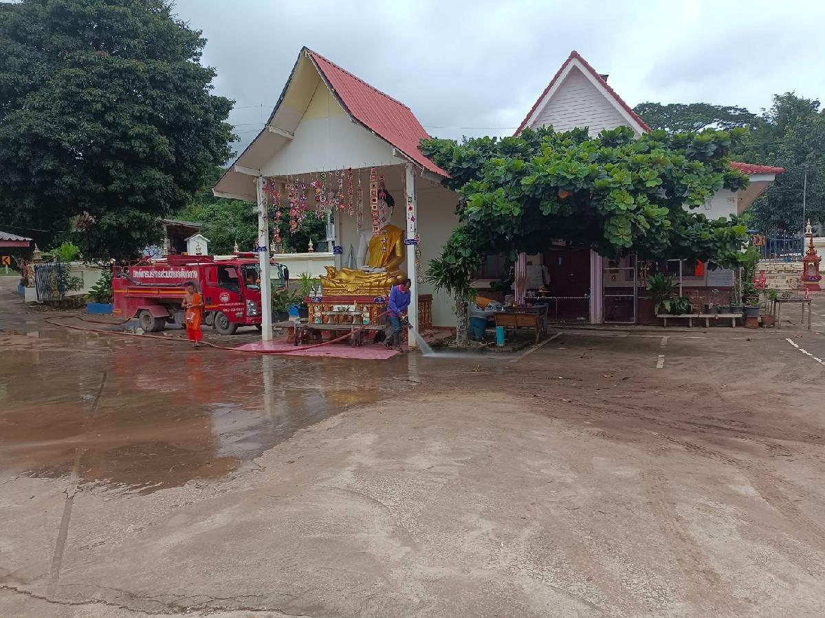 สนับสนุนรถบรรทุกน้ำฉีดล้างทำความสะอาดวัดบ้านถ้ำ