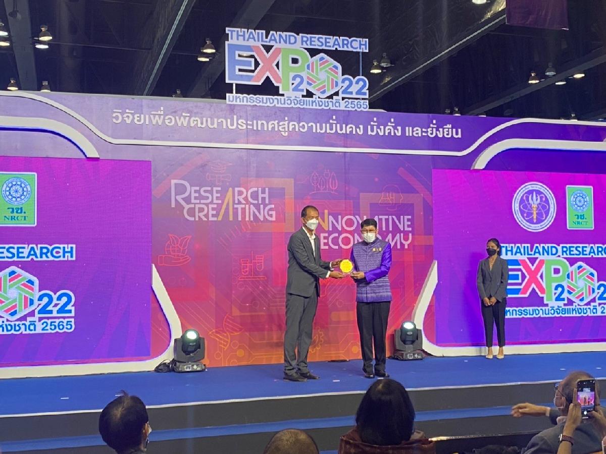 รับโล่ประกาศเกียรติคุณ "การประเมินเศรษฐกิจพอเพียงในระดับเข้าถึง" ในงานเสวนา อปท.กับการพลิกโฉมประเทศไทยด้วยปรัชญาเศรษฐกิจพอเพียง มหกรรมงานวิจัยแห่งชาติ 2565 (Thailand Reseach Expo 2022) วันที่ 4 สิงหาคม 2565