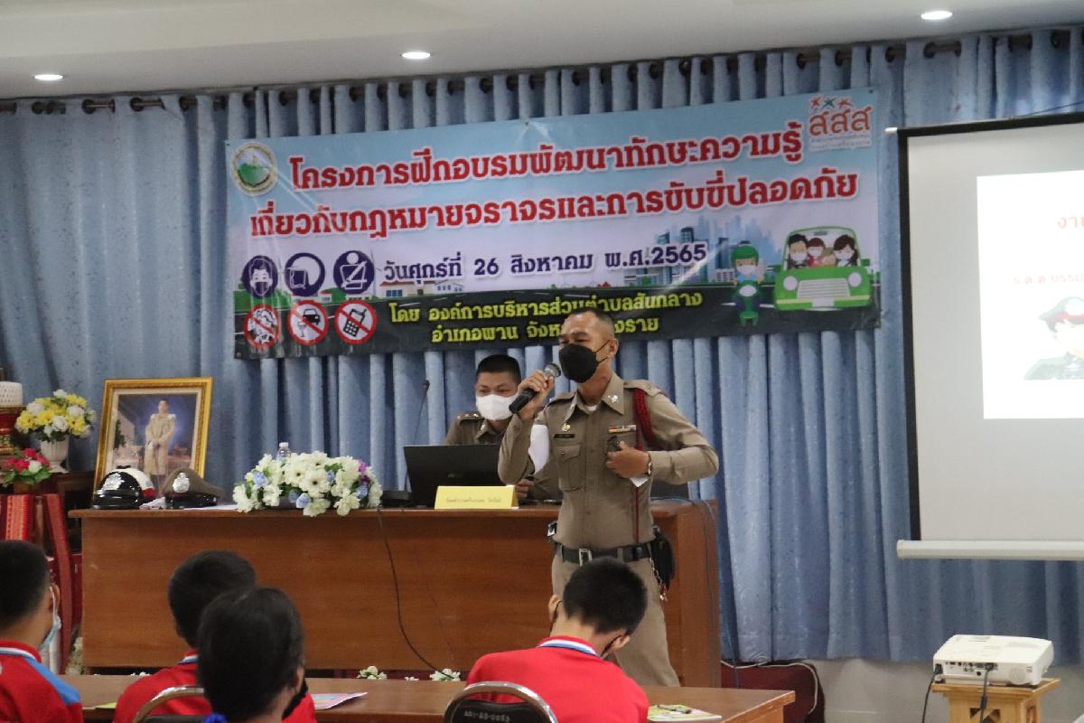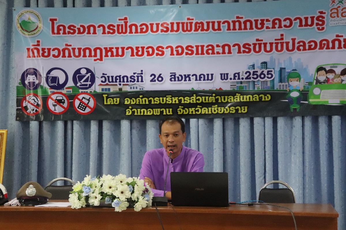 วันที่ 26 สิงหาคม 2565 เวลา 09.00 น. . นายอลงกรณ์ ดีน้อย นายก กันต์ นายก อบต.สันกลาง เป็นประธานเปิดโครงการฝึกอบรมพัฒนาทักษะความรู้เกี่ยวกับกฏหมายจราจรและการขับขี่ปลอดภัย พร้อมพูดคุยพบปะกลุ่มน้องๆนักเรียนโรงเรียนสันกลางวิทยาที่เข้าร่วมโครงการอบรมในครั้งนี้ จัดอบรม ณ ห้องประชุม อบต.สันกลาง