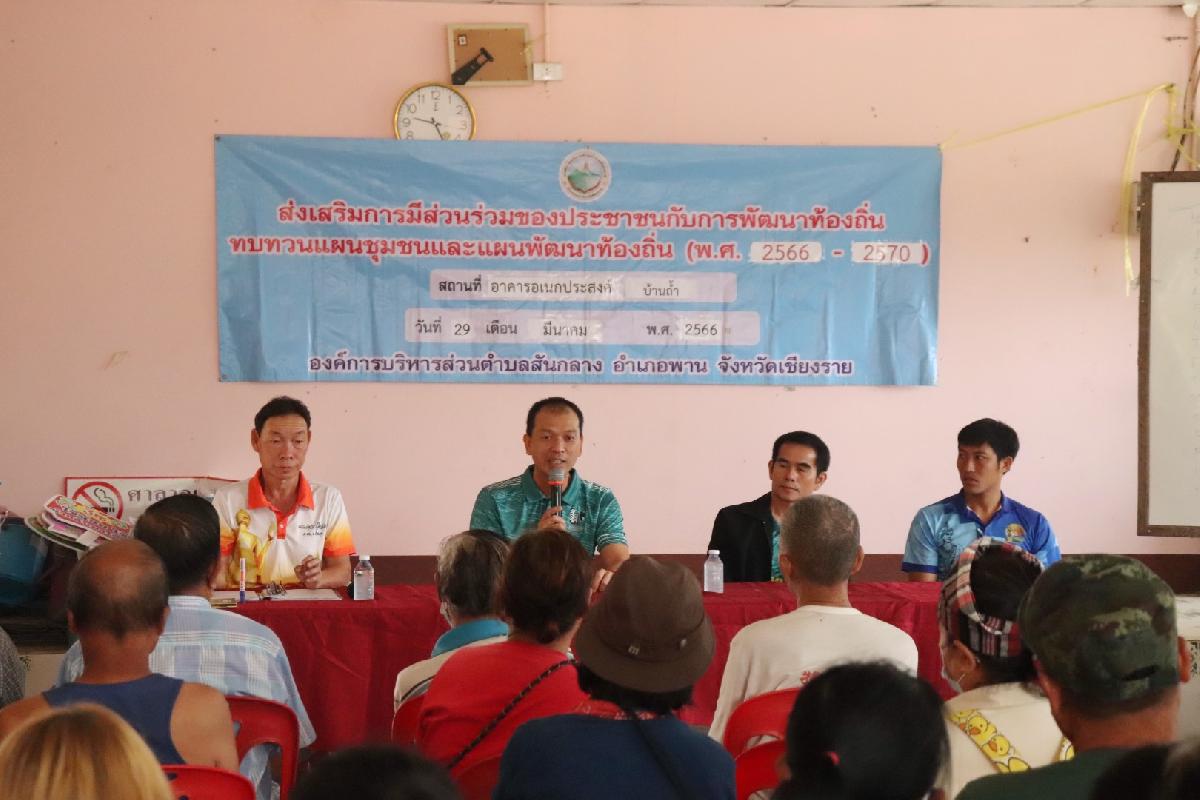 วันที่ 29 มีนาคม 2566 เวลา 09.00 น. นายอลงกรณ์ ดีน้อย นายกองค์การบริหารส่วนตำบลสันกลาง พร้อมนายวิรุจน์ สุวรรณทา ปลัด อบต. ร่วมประชุมประชาคมหมู่บ้าน บ้านถ้ำ หมู่ 3 ในการทบทวนแผนพัฒนาท้องถิ่น พ.ศ.2566-2570 รวมถึงเสนอโครงการต่างๆของหมู่บ้าน เพื่อจัดลำดับความสำคัญโครงการ ปีงบประมาณ 2567