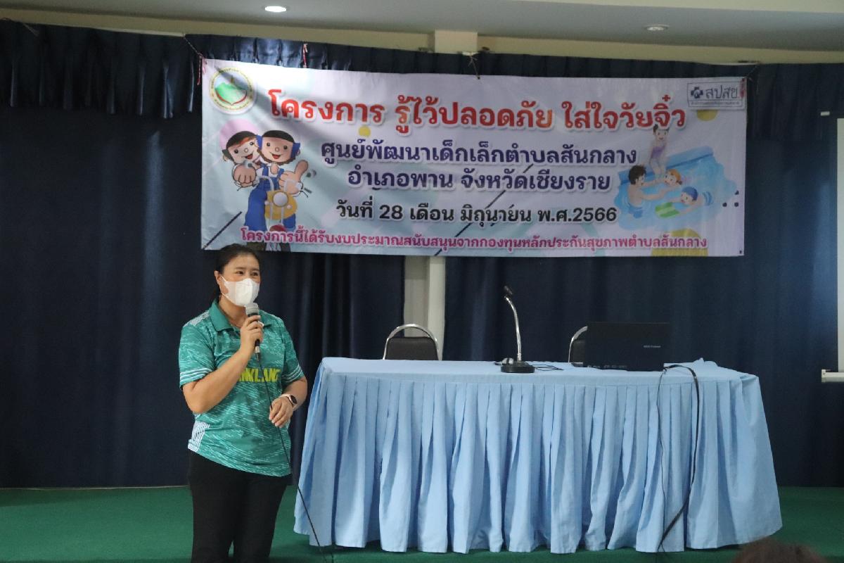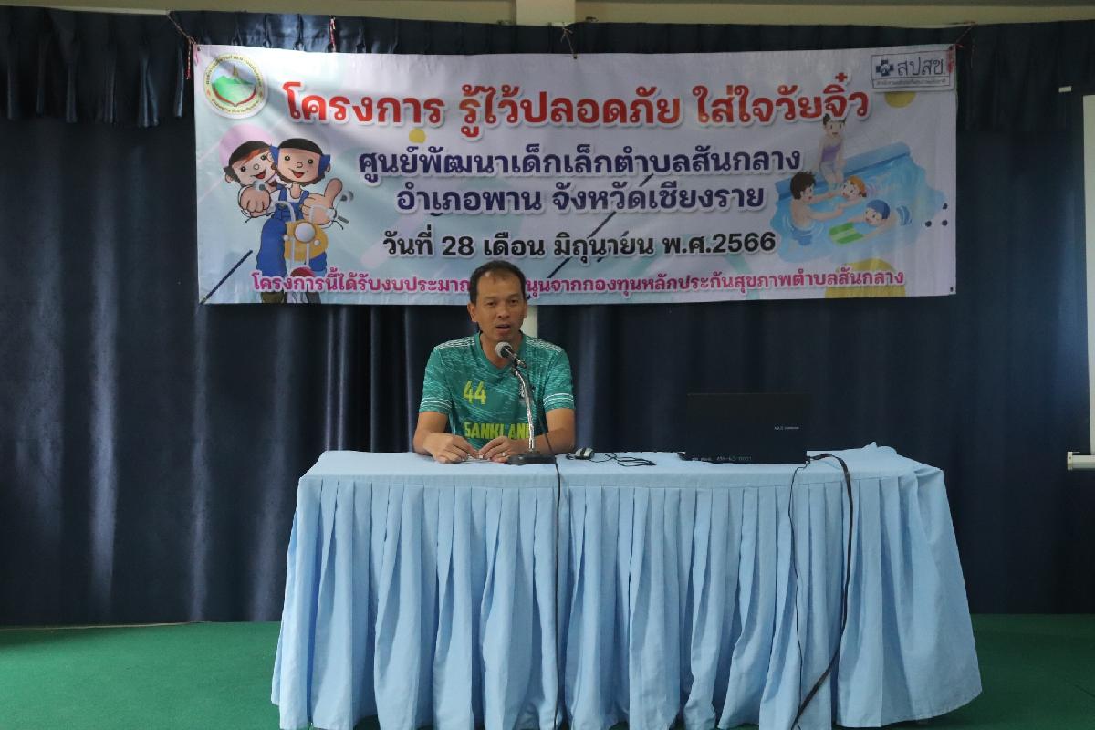 วันที่ 28 มิถุนายน 2566 เวลา 09.00 น. ????นายอลงกรณ์ ดีน้อย นายกองค์การบริหารส่วนตำบลสันกลาง เป็นประธานในพิธีเปิดโครงรู้ไว้ปลอดภัย ใส่ใจวัยจิ๋ว ????เนื่้อหาในการฝึกอบรม -บรรยายหัวข้อ หลักความปลอดภัยในการโดยสารรถจักรยานยนต์ และ กิจกรรมรณรงค์ขับขี่รถจักรยายนต์ สวมหมวกนิรภัย ปลอดภัย100% -บรรยายหัวข้อ ความปลอดภัยทางน้ำ และ ฝึกปฏิบัติเกี่ยวกับการช่วยเหลือเด็กจมน้ำ