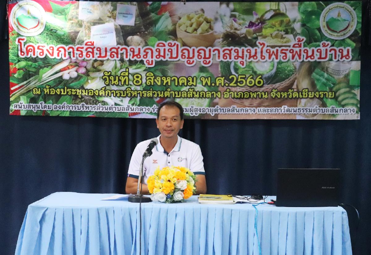 วันที่ 8 สิงหาคม 2566 เวลา 09.30 น. นายอลงกรณ์ ดีน้อย นายก อบต.สันกลาง ให้เกียรติเป็นประธานในพิธีเปิด โครงการสืบสานภูมิปัญญาสมุนไพรพื้นบ้าน ณ ห้องประชุมองค์การบริหารส่วนตำบลสันกลาง โดยได้รับการสนับสนุนและร่วมมือจากชมรมผู้สูงอายุตำบลสันกลาง สภาวัฒนธรรมตำบลสันกลาง โดยมีครูและนักเรียนจากโรงเรียนพานพิเศษพิทยาคม เข้าร่วมฝึกอบรม