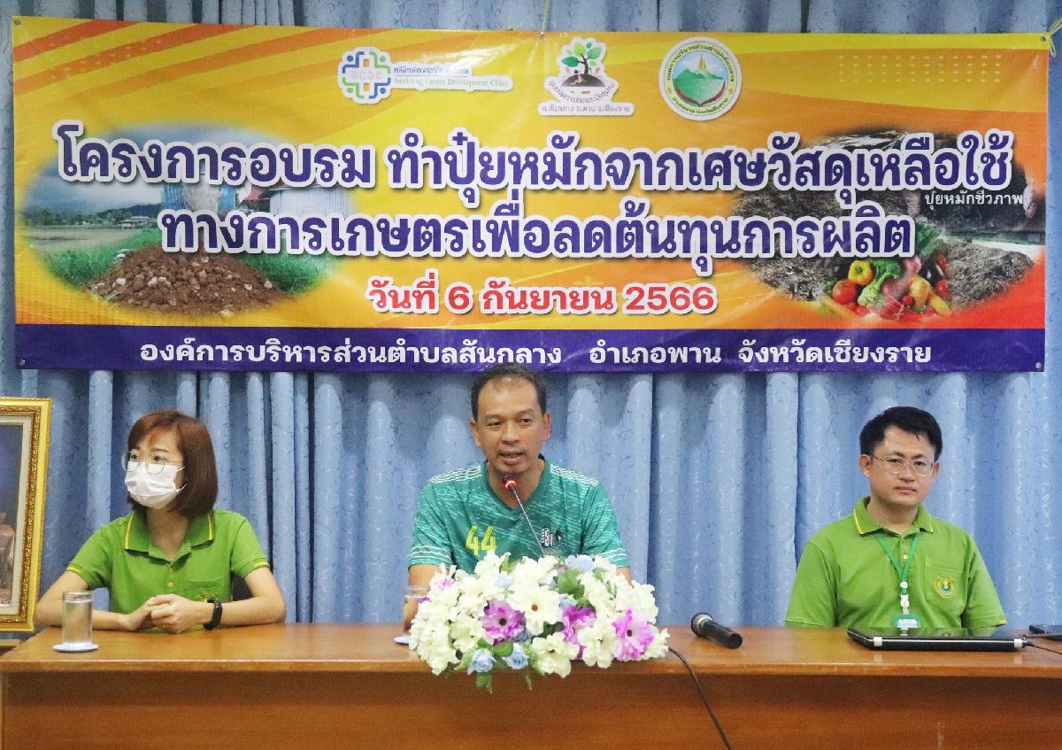 วันที่ 6 กันยายน 2566 เวลา 09.00 น. นายอลงกรณ์ ดีน้อย นายกองค์การบริหารส่วนตำบลสันกลาง ได้กล่าวเปิดโครงการอบรม ทำปุ๋ยหมักจากเศษวัสดุเหลือใช้ทางการเกษตรเพื่อลดต้นทุนการผลิต โดยมีผู้เข้าร่วมโครงการประกอบด้วย ผู้นำท้องที่ท้องถิ่นและกลุ่มตัวแทนเกษตรกรในหมู่บ้าน ทุกหมู่บ้าน