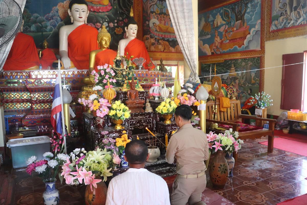 นายอนิรุจน์ ต่อบวรรัตน์ ปลัดอำเภอพาน ประธานฯ พร้อมด้วย นายศรีวรรณ์ วงศ์จินา กำนันตำบลสันกลาง นายอลงกรณ์ ดีน้อย นายกองค์การบริหารส่วนตำบลสันกลาง นายอนุสรณ์ แสนคำ สมาชิกสภาเกษตรกรจังหวัดเชียงราย ผู้นำท้องที่-ท้องถิ่น พนักงานส่วนท้องถิ่น ส่วนราชการ และพุทธศาสนิกชนในพื้นที่ ร่วมพิธีเจริญพุทธมนต์และเจริญจิตภาวนา เพื่อถวายพระพรแด่สมเด็จพระเจ้าลูกเธอ เจ้าฟ้าพัชรกิติยาภา นเรนทิราเทพยวดี กรมหลวงราชสาริณีสิริพัชร มหาวัชรราชธิดา โดยมีพระครูอดุลย์พิพัฒนาภรณ์ เจ้าคณะตำบลสันกลาง เขต 1 เจ้าอาวาสวัดดวงดี เป็นองค์ประธานสงฆ์ ณ วัดดวงดี ตำบลสันกลาง อำเภอพาน จังหวัดเชียงราย
