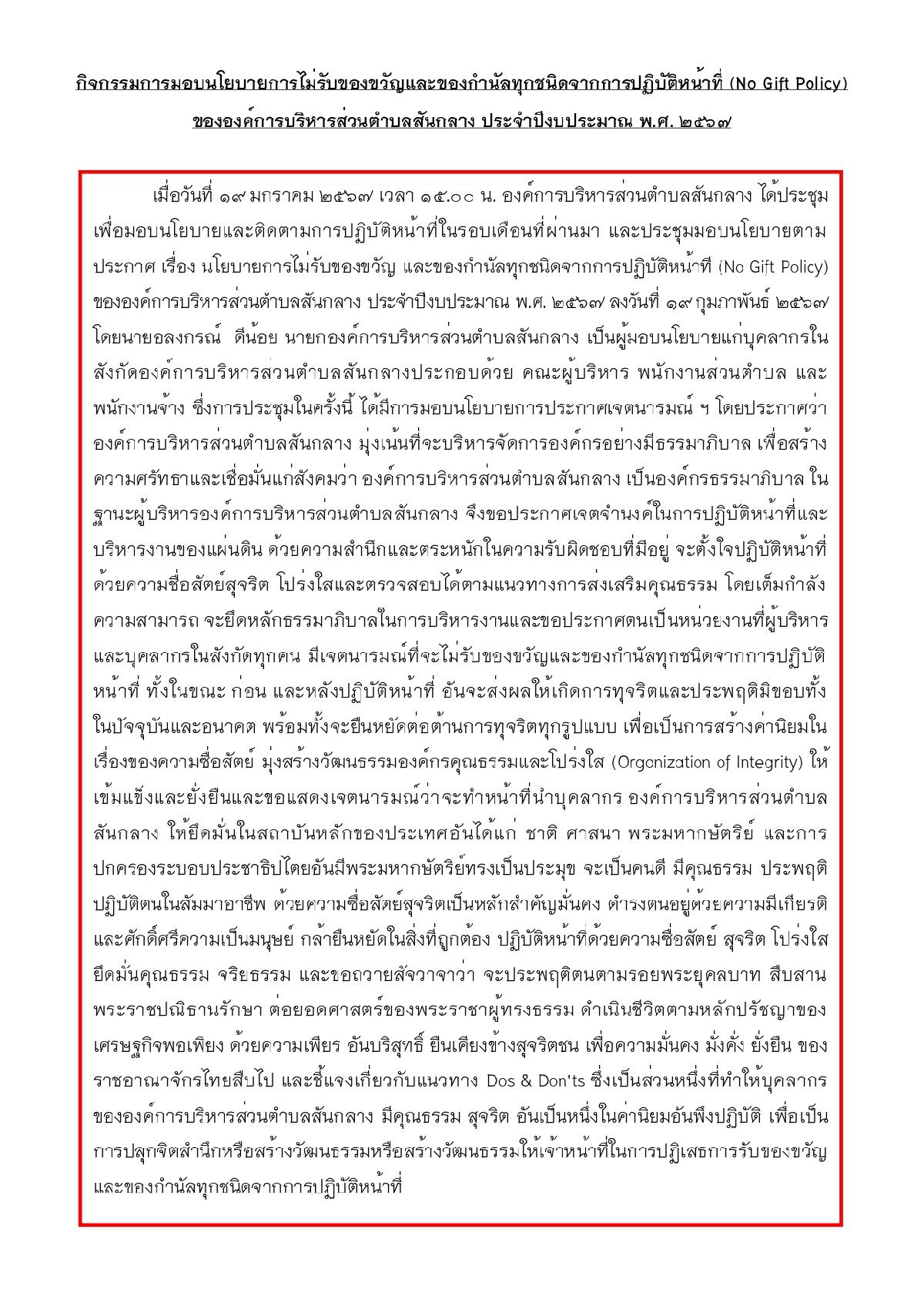 กิจกรรมการมอบนโยบาย (No Gift Policy)