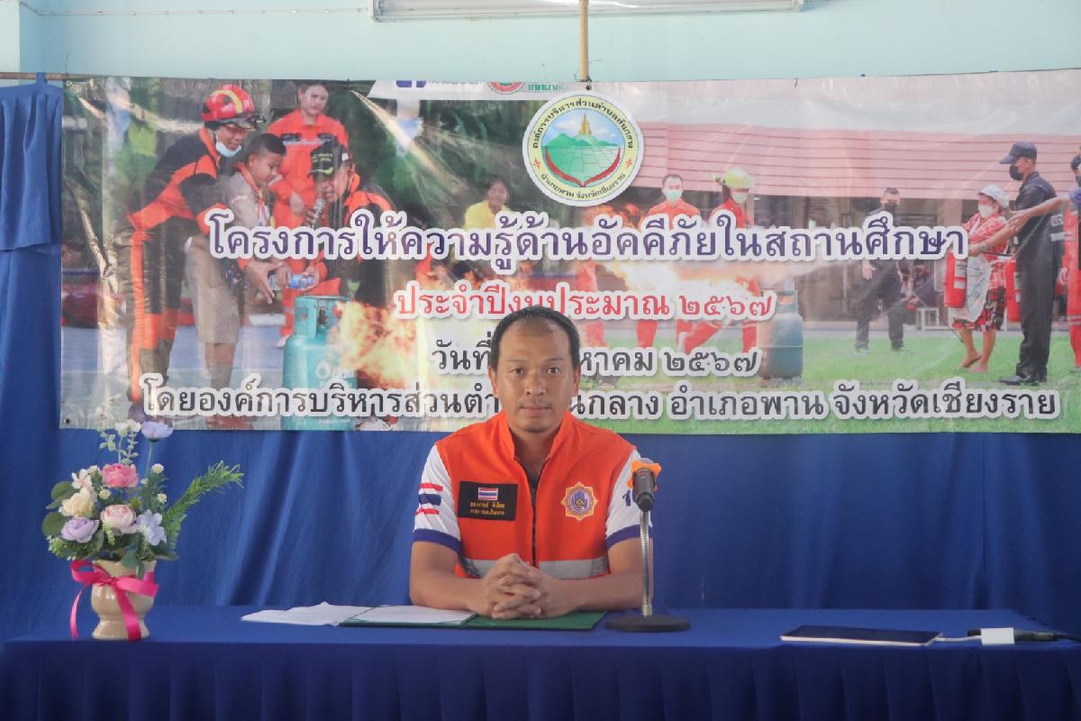 วันที่ 7 สิงหาคม 2567 เวลา 09.00 น. นายอลงกรณ์ ดีน้อย (นายกกันต์) นายกองค์การบริหารส่วนตำบลสันกลาง เป็นประธานในพิธีเปิดโครงการอบรมความรู้ด้านอัคคีภัยในสถานศึกษา โดยมีน้องๆนักเรียนโรงเรียนสันกลางวิทยาเข้าร่วมโครงการ ขอขอบคุณโรงเรียนสันกลางวิทยา นำโดยนายศักดิ์ชัย กาวี ผู้อำนวยการโรงเรียนสันกลางวิทยา คณะครู รวมถึงวิทยากรที่เดินทางมาให้ความรู้ การฝึกปฏิบัติการใช้ถังดับเพลิง เพื่อให้ทราบถึงวิธีการอพยพ การรวมพล ทักษะในการป้องกันเหตุอัคคีภัย ให้เกิดความปลอดภัยในการใช้ชีวิตประจำวัน และลดความสูญเสียทั้งชีวิตและทรัพย์สินที่อาจเกิดขึ้นได้