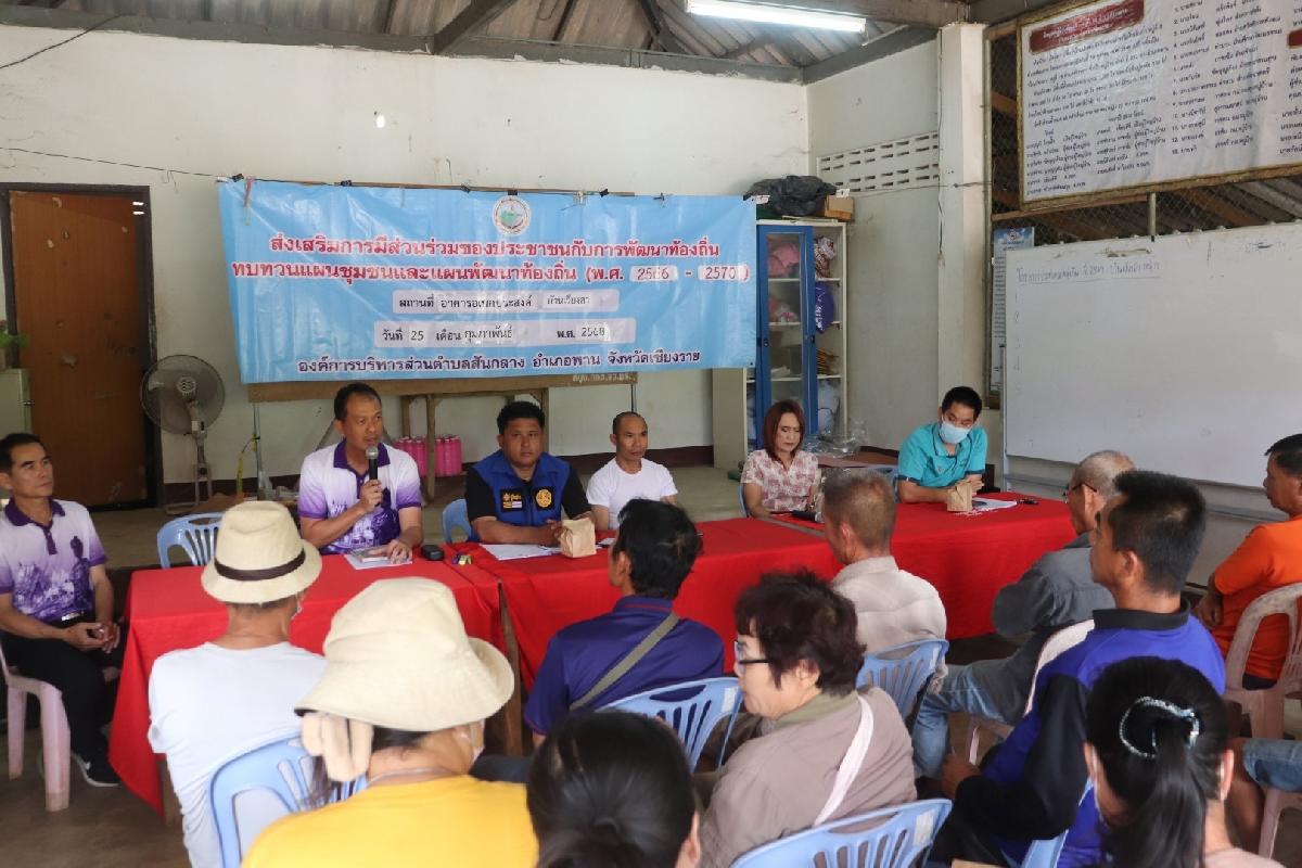 วันที่ 25 กุมภาพันธ์ 2568 นายอลงกรณ์ ดีน้อย นายก อบต.สันกลาง พร้อมนายวิรุจน์ สุวรรณทา ปลัด อบต. ร่วมประชุมประชาคมหมู่บ้าน บ้านใหม่พัฒนา หมู่ 12 (ภาคเช้า) และบ้านเวียงสา หมู่ 18 (ภาคบ่าย) เพื่อรับฟังปัญหาความต้องการของหมู่บ้าน เสนอโครงการเพิ่มเติม/เปลี่ยนแปลงแผนพัฒนาท้องถิ่น และเตรียมความพร้อมในการจัดทำร่างข้อบัญญัติงบประมาณ 2569 ของ อบต.สันกลาง ในการนี้ นายก อบต. ได้พบปะและแจ้งการดำเนินงาน/โครงการของ อบต.ให้พี่น้องประชาชนได้รับทราบ รวมถึงรับฟังปัญหา/ข้อเสนอแนะ เพื่อเป็นประโยชน์การพัฒนาท้องถิ่นและแก้ไขปัญหาในพื้นที่ต่อไป