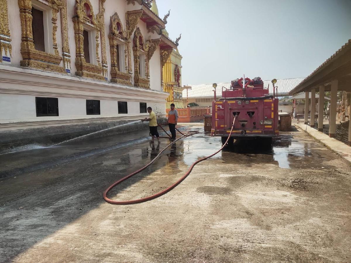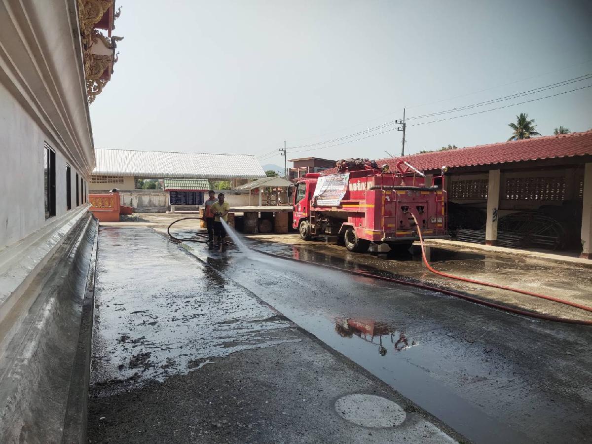 สนับสนุนฉีดล้างทำความสะอาดวัดเชียงหมั้น