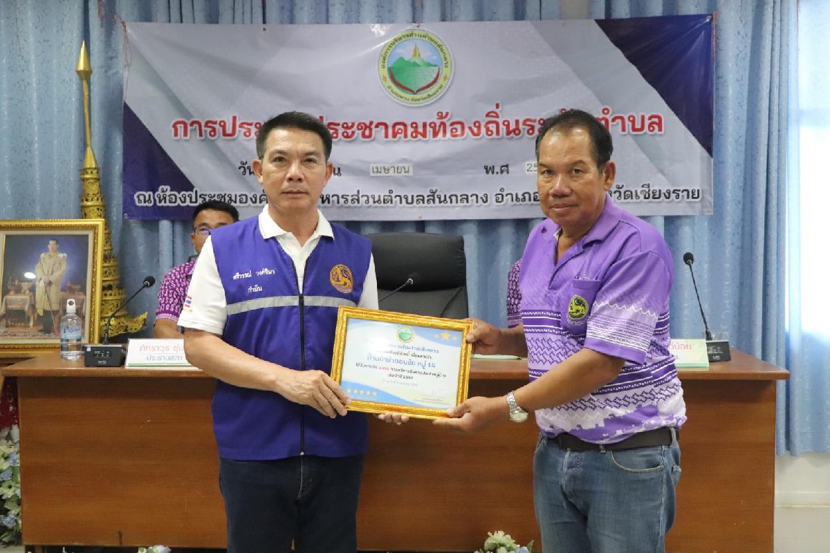 ขอแสดงกับหมู่บ้านที่มีการบริหารกิจการประปาดีเด่น ในพื้นที่ตำบลสันกลาง ประจำปี 2567 รับมอบเกียรติบัตรเชิดชูเกียรติ