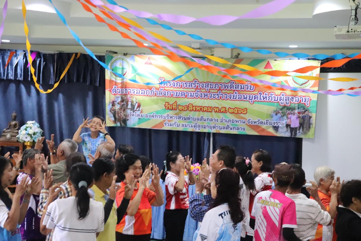 วันที่ 28 สิงหาคม 2568 นายอลงกรณ์ ดีน้อย นายกองค์การบริหารส่วนตำบลสันกลาง เป็นประธานในพิธีเปิดโครงการสร้างสุขภาพดีสมวัยด้วยการออกกำลังกายตามจังหวะรำวงย้อนยุค โดยมีตัวแทนผู้สูงอายุ 18 หมู่บ้าน เข้าร่วมโครงการ เพื่อเสริมสร้างสุขภาพให้กับผู้สูงอายุ ให้มีสุขภาพกายใจที่ดี และได้พบปะทำกิจกรรมร่วมกัน ขอขอบคุณครูเมธินี เล็กประเสริฐ ให้เกียรติเป็นวิทยากรบรรยายให้ความรู้ รวมถึงภาคกิจกรรมให้กับกลุ่มผู้สูงอายุในครั้งนี้
