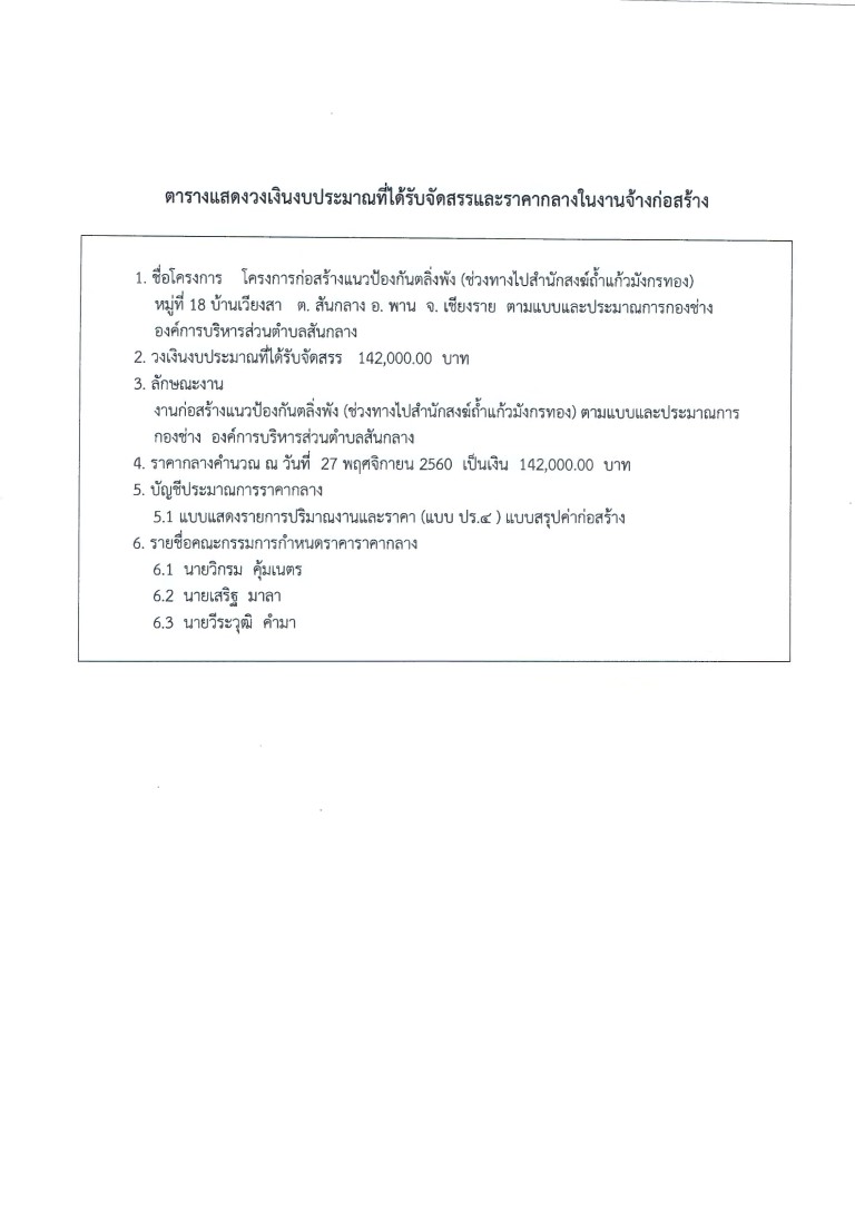 ราคากลางโครงการก่อสร้างแนวป้องกันตลิ่งพัง หมู่ 18 บ้านเวียงสา