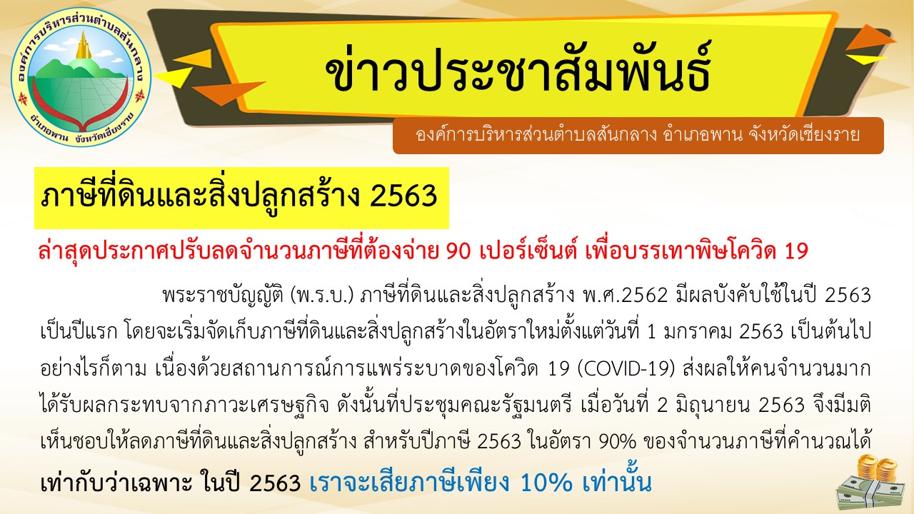 ประชาสัมพันธ์การลดภาษีที่ดินและสิ่งปลูกสร้างตามมติ ครม. เมื่อวันที่ 2 มิถุนายน 2563