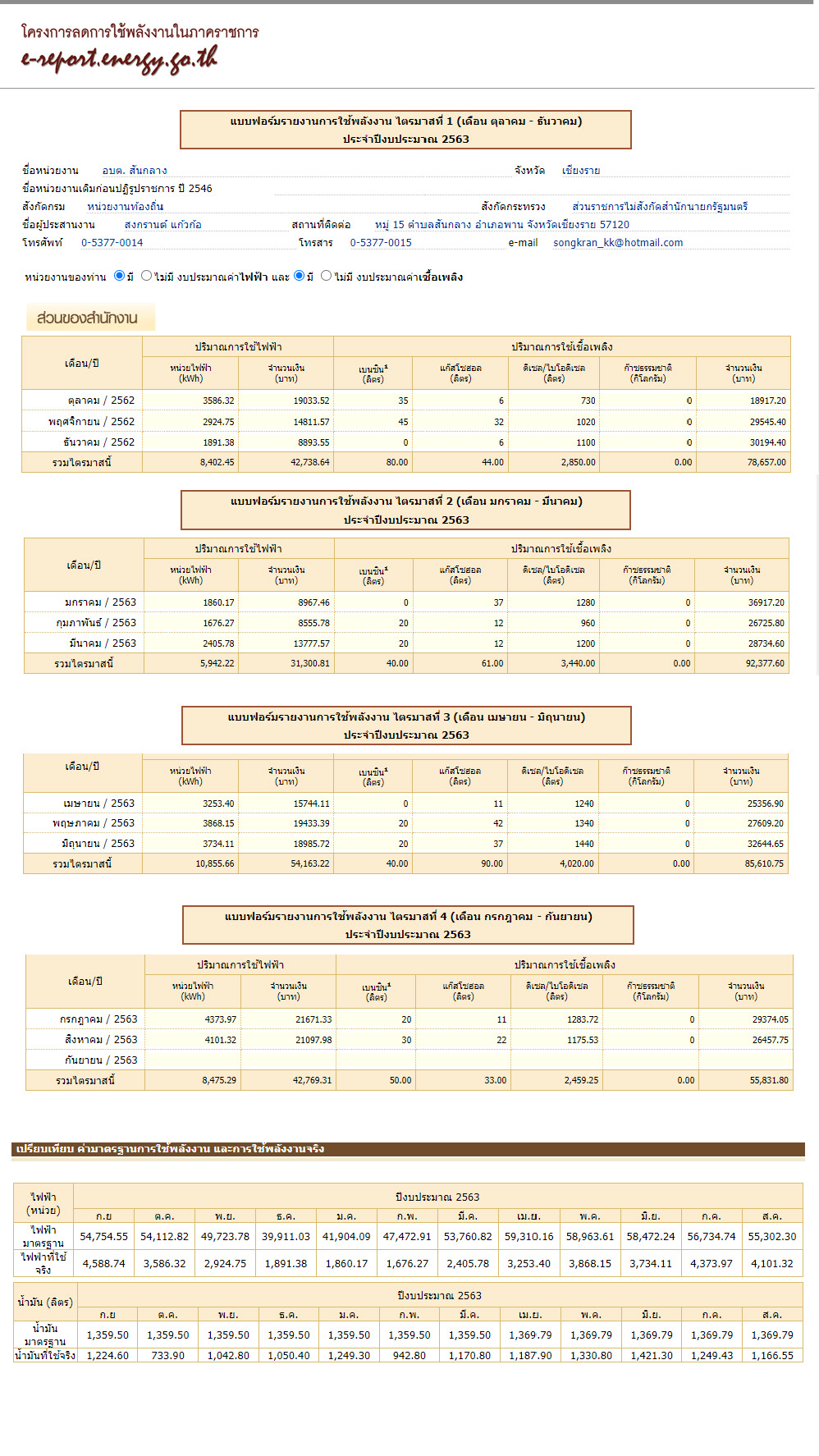 รายงานข้อมูลงบประมาณค่าใช้จ่ายด้านไฟฟ้าและน้ำมันเชื้อเพลิง ประจำปีงบประมาณ 2563