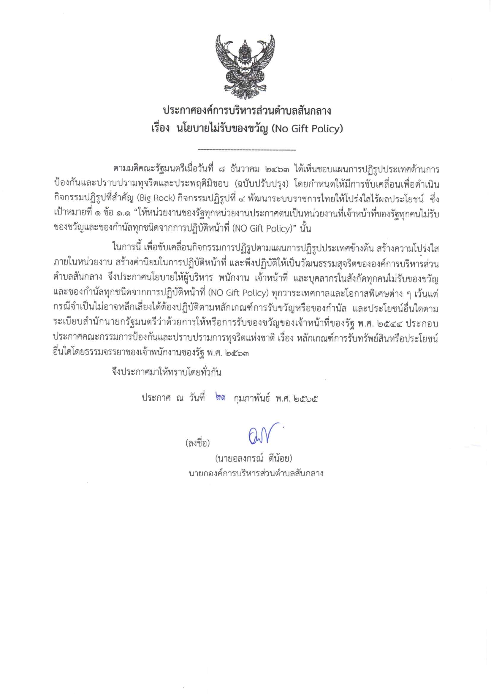 ประกาศนโยบายไม่รับของขวัญ (No Gift Policy)