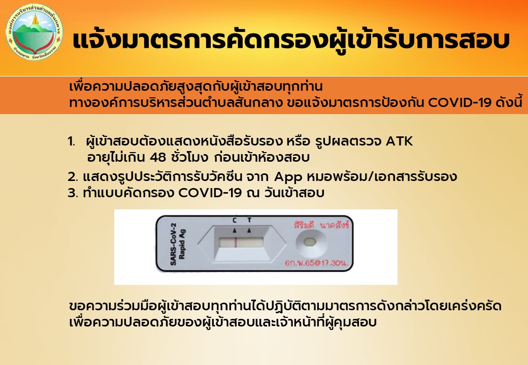 แจ้งมาตรการป้องกัน Covid-19 ของผู้เข้าสอบพนักงานจ้างตามภารกิจและพนักงานจ้างทั่วไป ประจำปี 2565