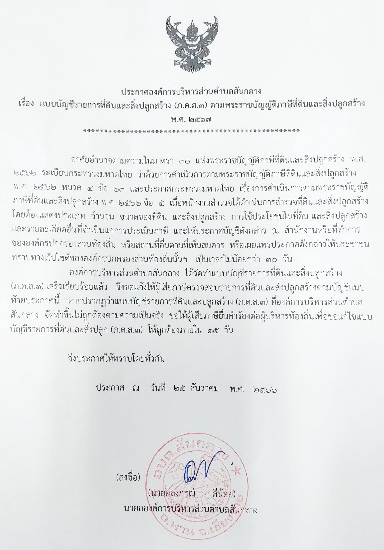 ประกาศบัญชีรายการที่ดินและสิ่งปลุกสร้าง (ภ.ด.ส.3) ตาม พรบ.ภาษีที่ดินและสิ่งปลูกสร้าง พ.ศ.2567