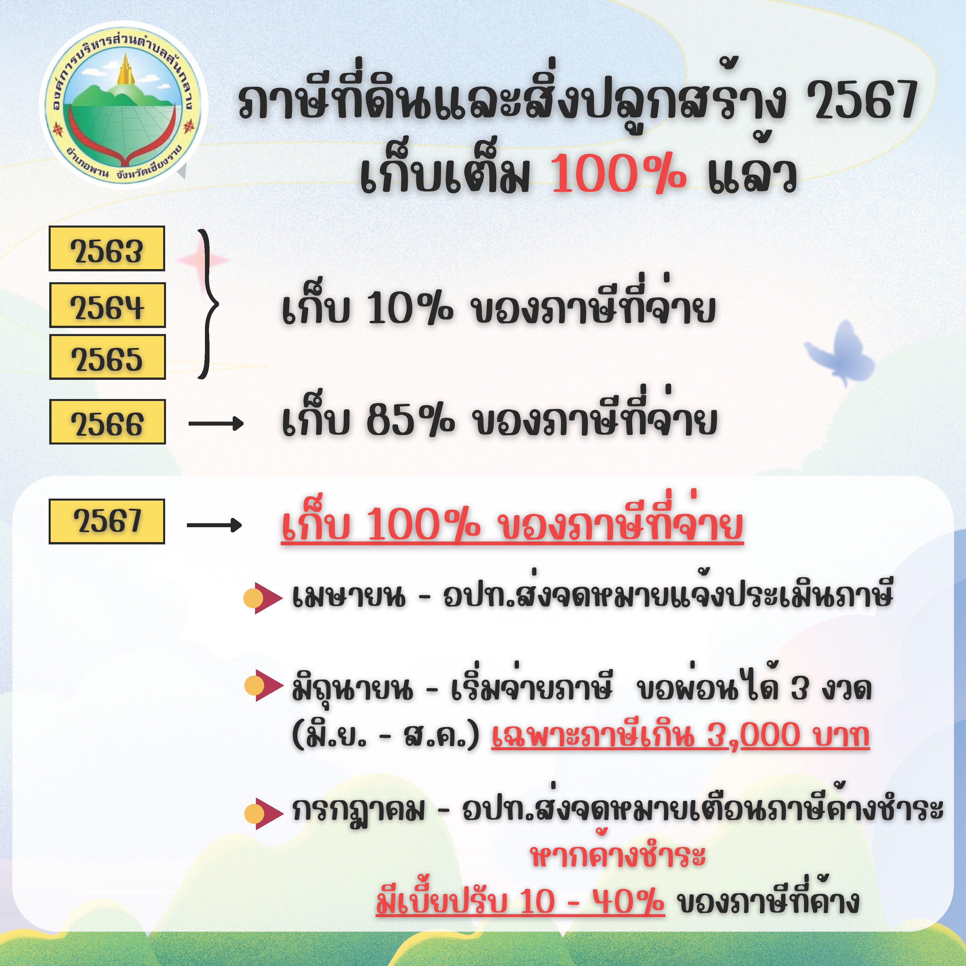ข่าวประชาสัมพันธ์ ภาษีที่ดินและสิ่งปลูกสร้าง ประจำปี 2567