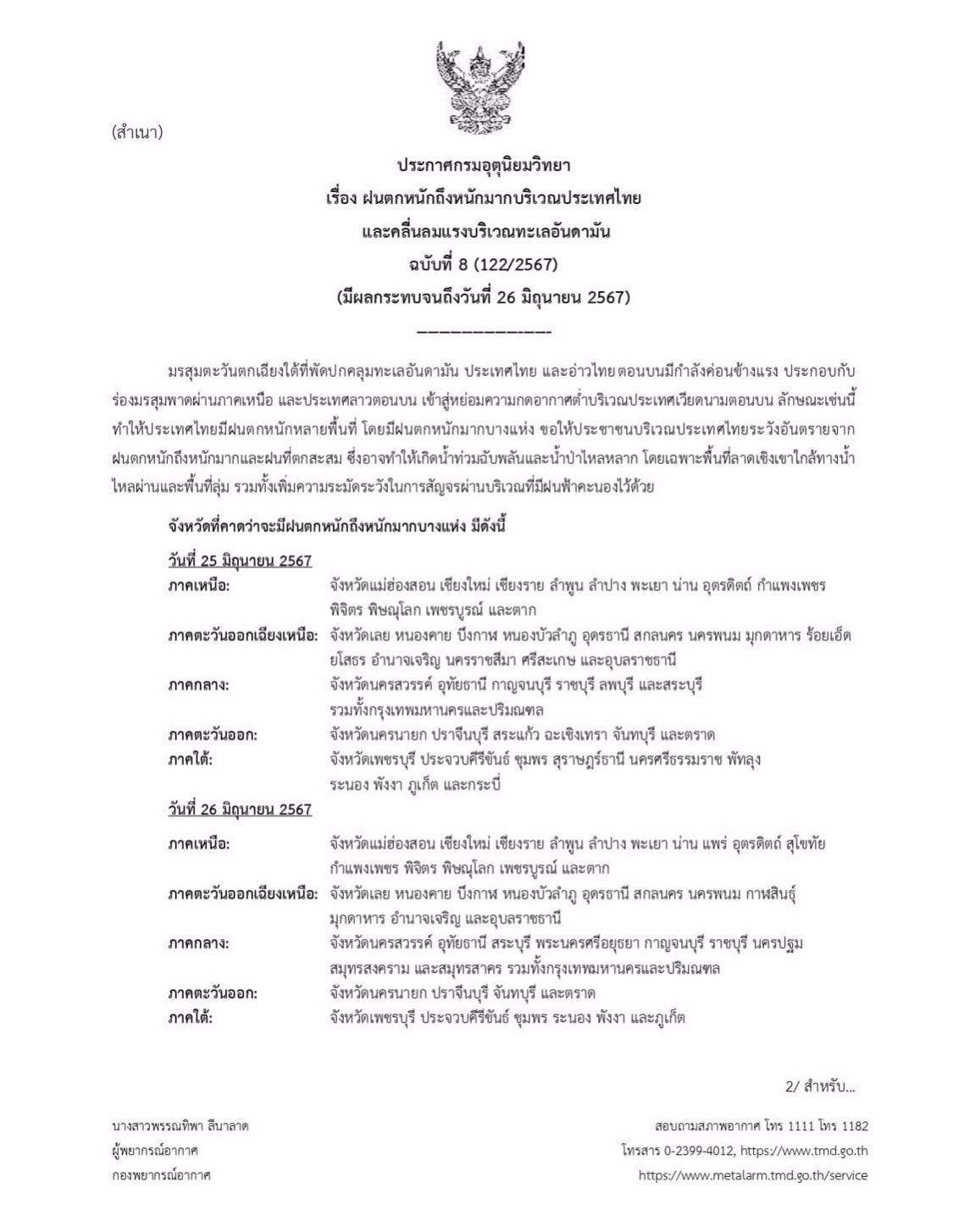 ประกาศกรมอุตุนิยมวิทยา ฉบับที่ 8 (122/2567)