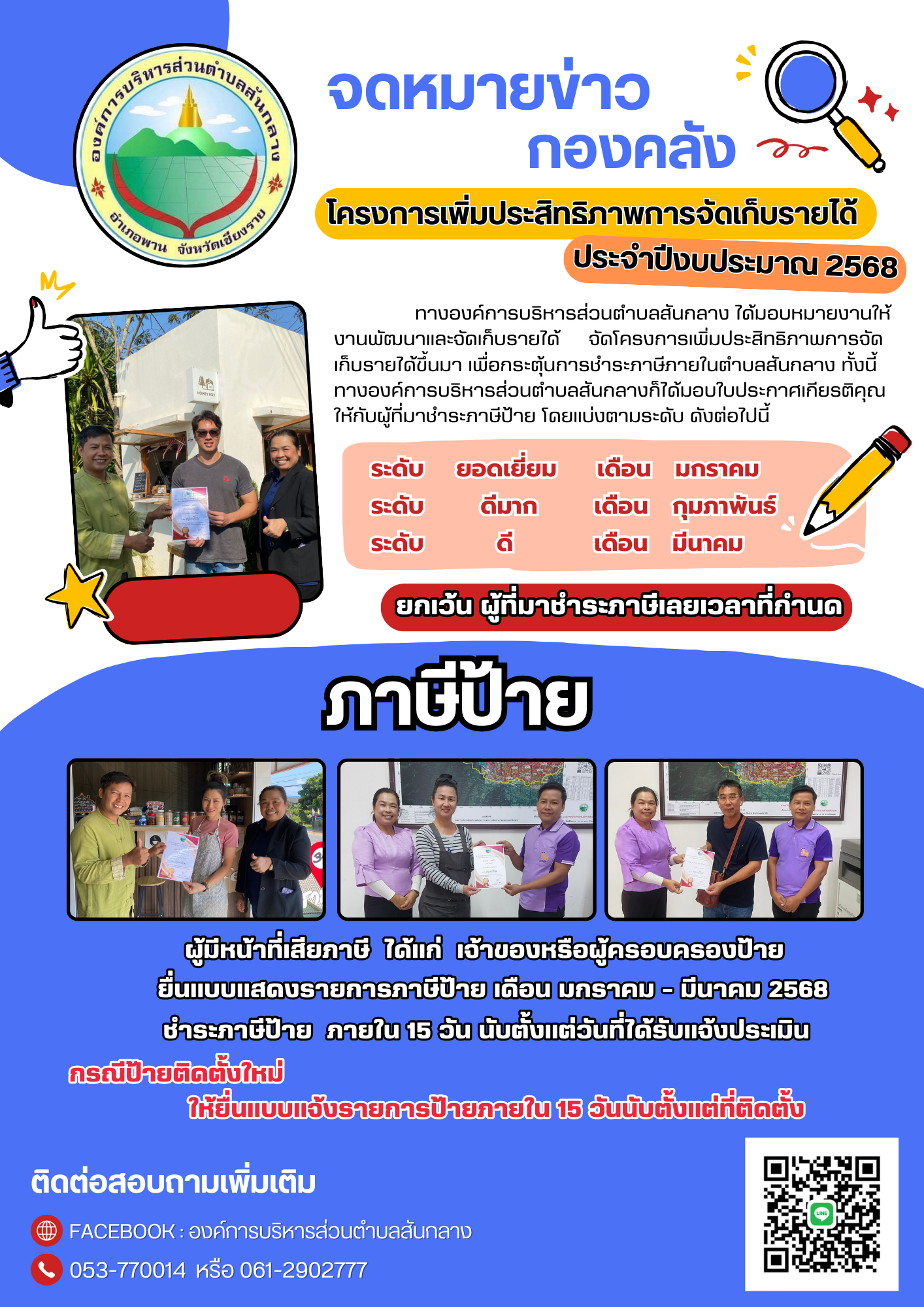 จดหมายข่าว กองคลัง อบต.สันกลาง เรื่อง โครงการเพิ่มประสิทธิภาพการจัดเก็บรายได้ และกำหนดระยะเวลายื่นแบบแสดงรายการภาษีป้าย ประจำปี 2568