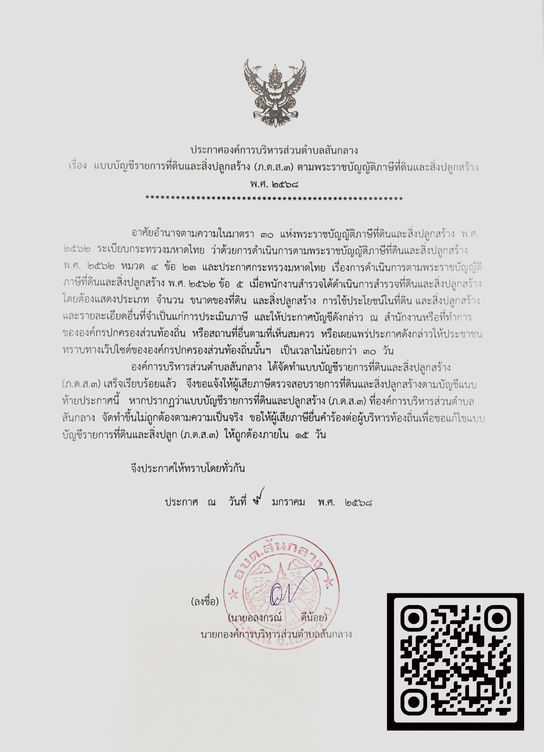 ประกาศบัญชีรายการที่ดินและสิ่งปลุกสร้าง (ภ.ด.ส.3) ตาม พรบ.ภาษีที่ดินและสิ่งปลูกสร้าง พ.ศ.2567